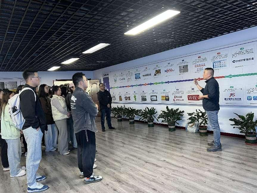 在见习考察过程中,yl23455永利集团电商专业师生首先参观了唐山成联电子商务有限公司的展厅,详细了解了公司的发展历程、主营业务、运营模式及取得的荣誉。唐山成联电子商务有限公司以其独特的商业模式和前沿的技术应用,在产业互联网和B2C电子商务领域取得了显著成绩,特别是在现代物流与供应链管理方面,积累了丰富的经验和技术实力。通过参观,师生们对公司的实力和发展前景有了更加直观和深刻的认识。