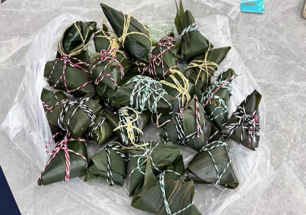活动伊始,经验丰富的同学们主动担任起“小老师”的角色,他们手把手地指导大家将粽叶卷成漏斗形,放入糯米和红枣,然后巧妙地包裹和捆绑,动作流畅如行云。起初,大家手忙脚乱,包出的粽子形状各异,有的过于臃肿,有的歪斜不正,甚至有的漏出了米粒,现场笑声此起彼伏。然而,同学们并未气馁,通过持续的调整和改进,逐渐掌握了技巧,一个个棱角分明、精致可爱的粽子在同学们的巧手中诞生。