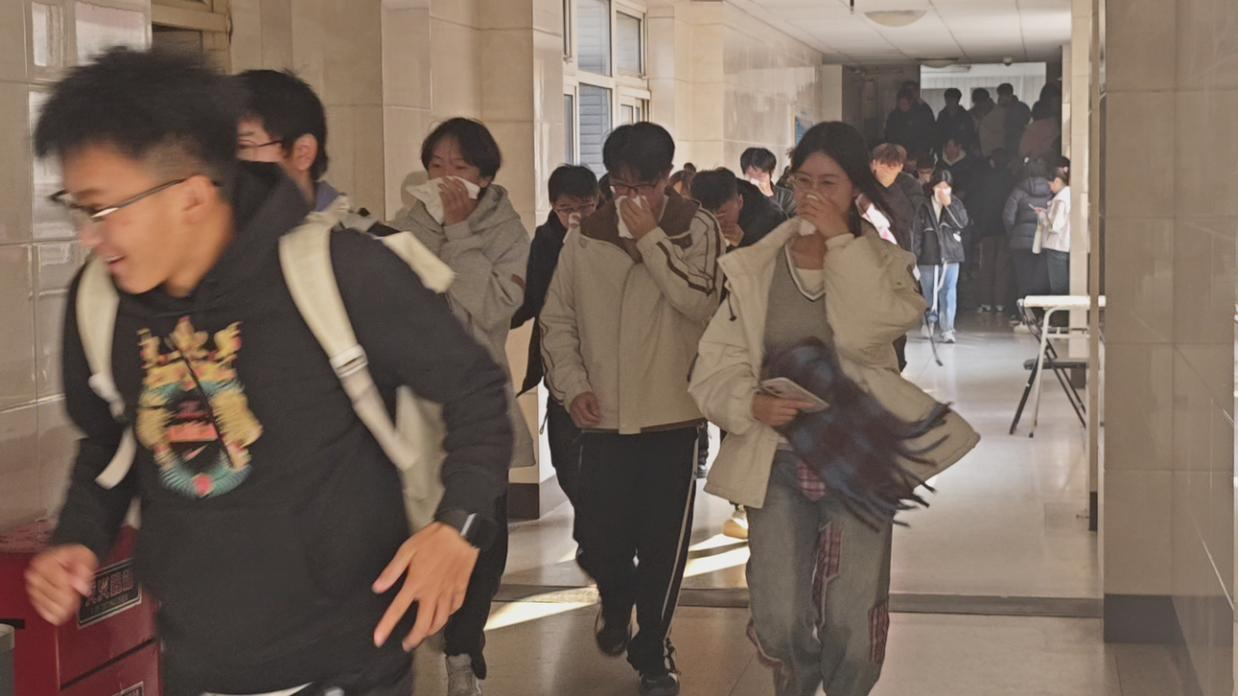 第二环节为模拟火灾发生时的学生疏散逃生演练。下午1:40分,随着急促的警报声响起,全体师生立即进入紧急避险状态,全体人员低姿前行,用湿毛巾捂住口鼻,听从指挥有序撤离,疏散到安全地点后,各班级迅速清点人数,逐级上报领导小组,确保所有学生到达安全地点。本次演练共用时2分10秒,演练过程严肃紧张,有条不紊,做到了安全撤离,有序集合,达到了预期效果。