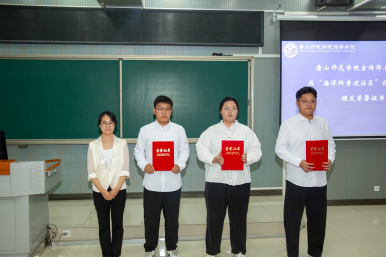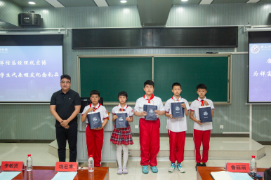 随后,唐山海洋馆总经理线宏博向祥富小学的学生代表赠送了文化节主题礼品;校学生处学生教育科科长李敏贤和宣传部新闻中心主任王微为海洋科普优秀志愿者颁发了奖项,以表彰他们在传播海洋知识方面所作出的贡献。